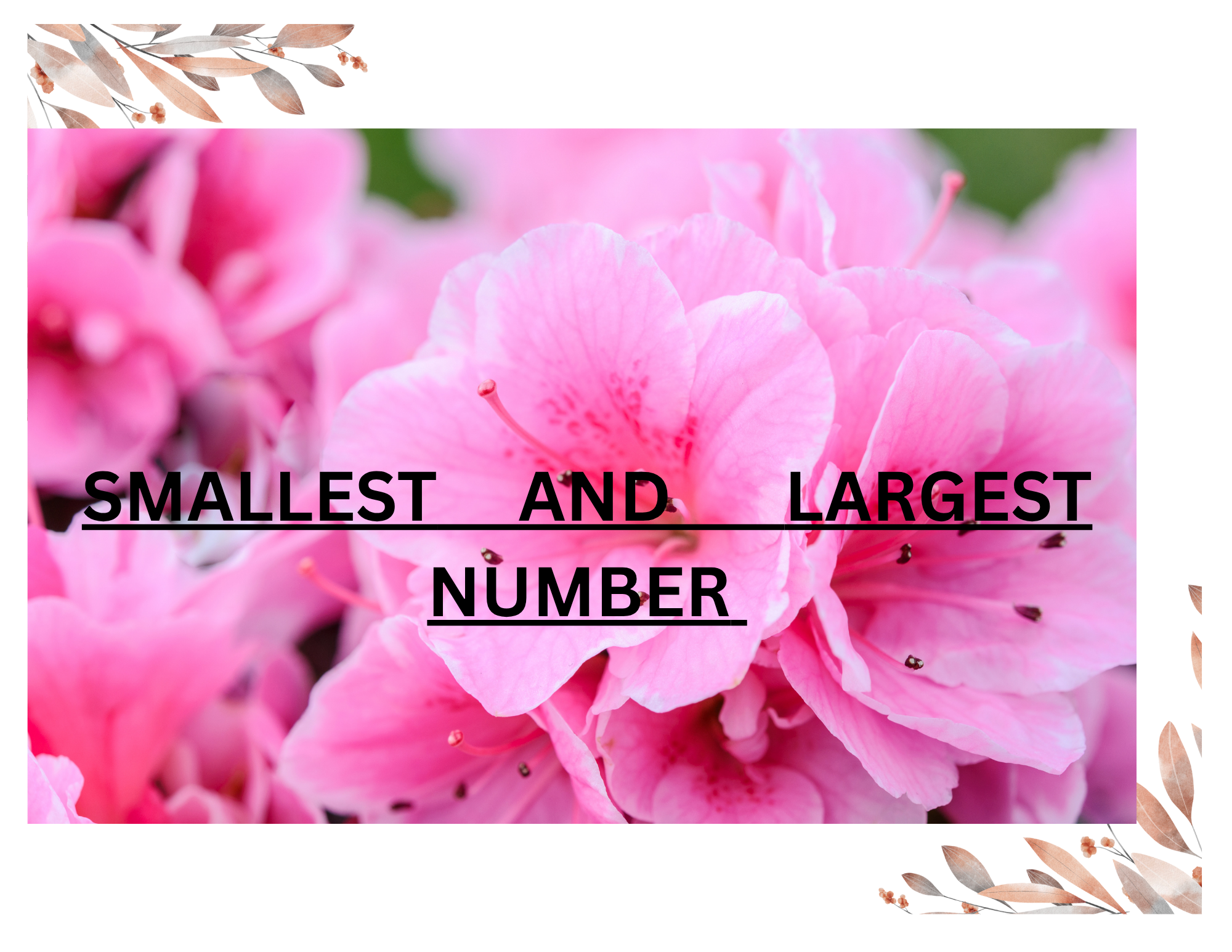 •सबसे छोटी संख्या ::(Smallest Number)TYPE:1 यदि पूछा जाये की 4 अंक की सबसे छोटी संख्या:1 लिख के तीन 0 =1000 5 अंक की सबसे छोटी संख्या ::1 लिख के चार 0 =10000 8 अंक की सबसे छोटी संख्या ::1 लिख के सात 0=10000000