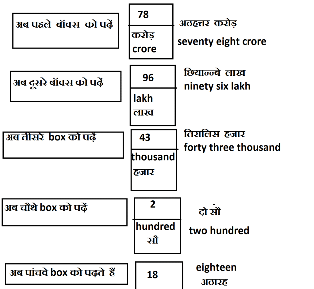 seventy eight crore ninety six lakh forty three thousand two hundred eighteen अठहत्तर करोड़ छियान्बे लाख तिरालिस हजार दो सौ अठारह