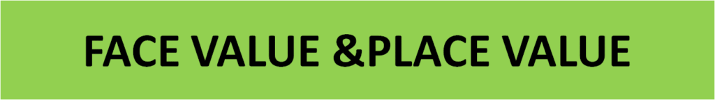 •FACE VALUE : अंकित मान किसी भी संख्या(number) मे यदि किसी अंक(digit ) का अंकित मान निकाला जाता है तो वह अंक (digit)ही उसका अंकित मान (face value)होगा जैसे : 3467980 इस प्रश्न मे यदि पूछा जाये की 7 का अंकित मान क्या होगा तो उत्तर 7 ही होगा अर्थात किसी अंक (digit)का अंकित मान(face value ) वही अंक (digit ) ही होगा I