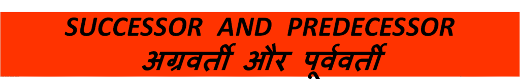 •SUCCESSOR(अग्रवर्ती ):उस संख्या के आगे आने वाली संख्या अग्रवर्ती संख्या कहलाती है I अग्रवर्ती संख्या निकालने के लिए पूछी गयी संख्या मे 1 को जोड़ना होगा जैसे : 4568 की अग्रवर्ती संख्या क्या होगी 4568 + 1 = 4569