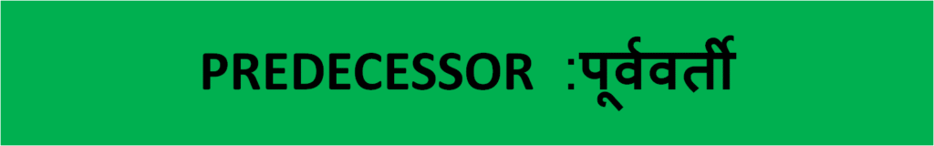 •PREDECESSOR : पूर्ववर्ती पूर्ववर्ती संख्या किसी संख्या के पहले आने वाली संख्या होती है I यदि किसी संख्या की पूर्ववर्ती संख्या निकालनी है तो उस संख्या से 1 को घटाना पड़ेगा I जैसे :: 45682 की पूर्ववर्ती संख्या क्या होगी ? 45682-1 = 45681